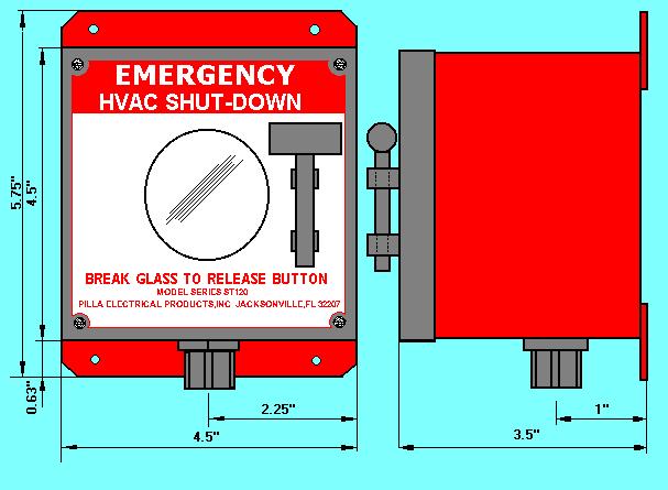 "Break Glass-Push Button" model, maintained (push on/push off) operator behind glass |